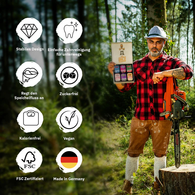 Handgefertigt in Deutschland, FSC-zertifiziert und alltagstauglich für unterwegs, Büro oder nach dem Essen.